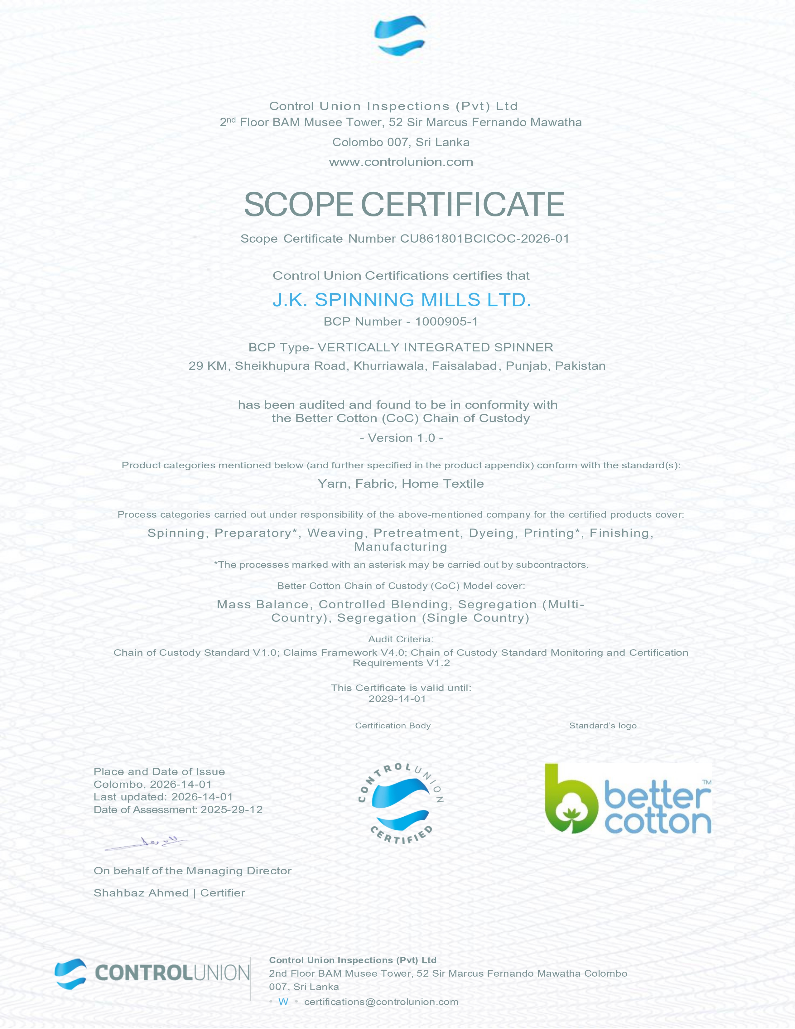 JK Group is committed for continuous improvement in system.