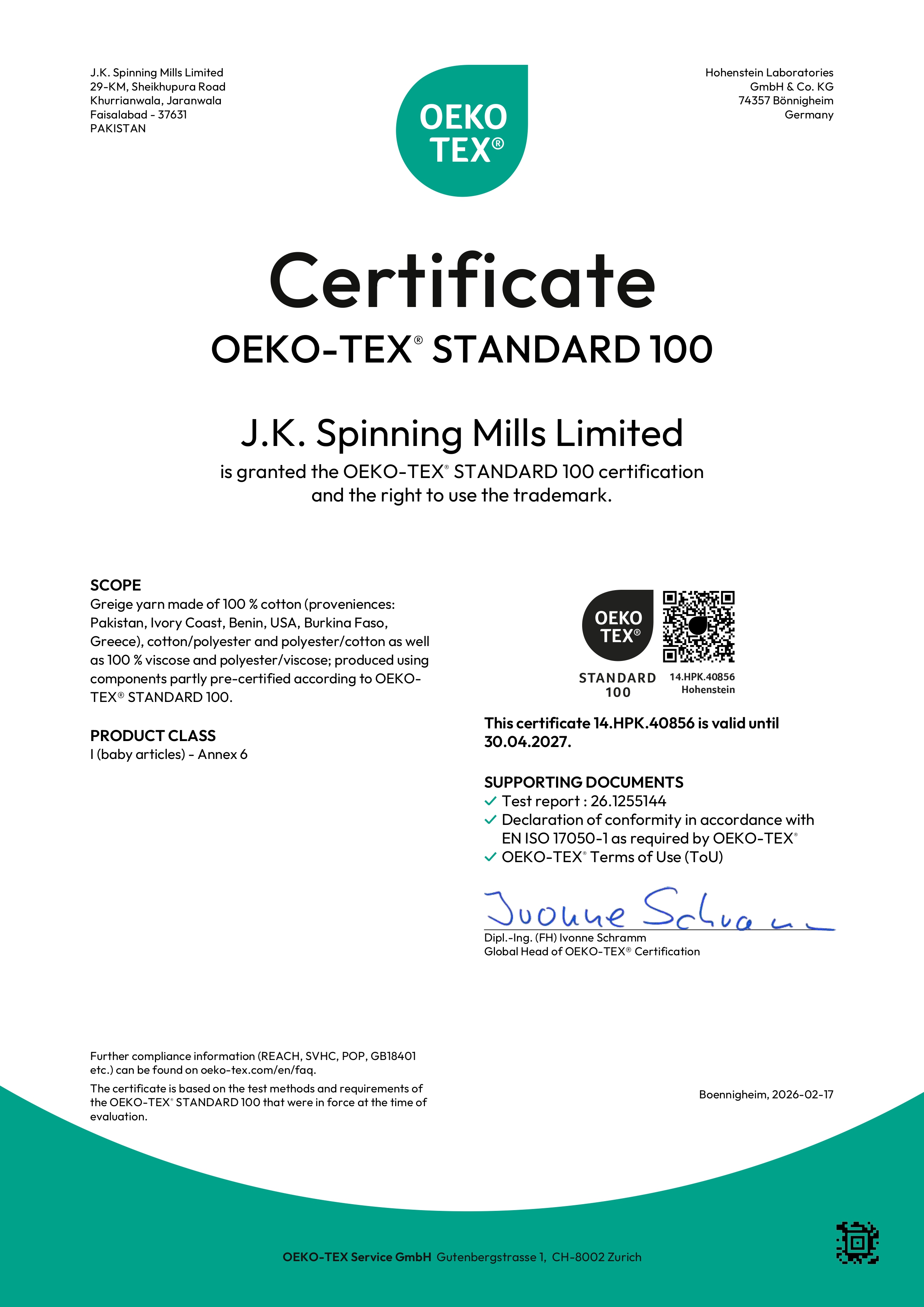 JK Group management acquired ISO 14001:2015 as a response to the changing face of environmental legislation that is causing serious problems for many industries, with the textile industry being no exception. Ecology is a new parameter that today increasingly appears in the catalogue of requirements. For confidence in textiles, the need has arisen for such a seal of approval or label for products that in their manufacture, use and disposal have only a minimal impact on the environment.
